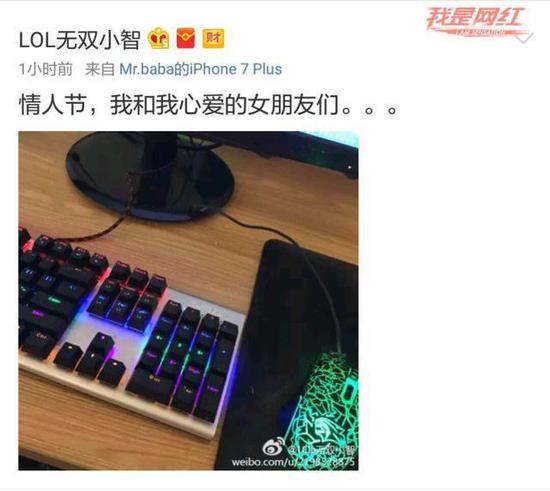 情侣中最特别的还是小智和他的女朋友们。在情人节这天,小智也首次在微博曝光了自己的女朋友照片。此图一发,瞬间让百万单身粉丝感同身受,估计心里的泪啊,西湖的水哦!小智要不要这么会玩的,直言情人节和会发光的女友键盘过。