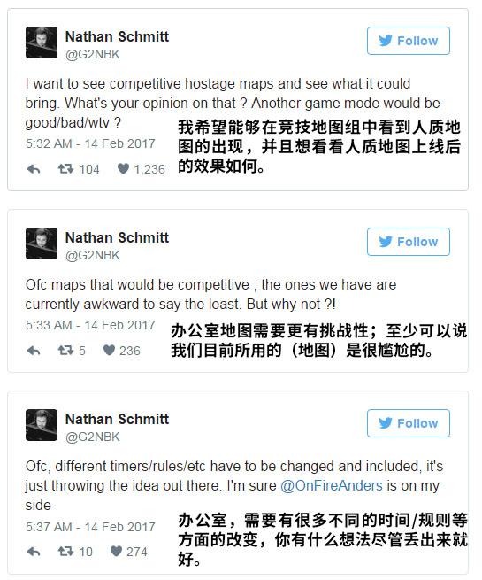 Nathan "NBK" Schmitt最近在推特上表示,他希望能看到人质模式添加到CS:GO的竞技比赛当中。