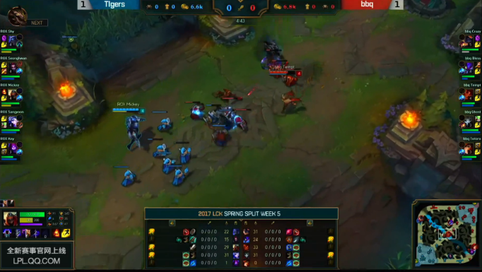 BBQ vs ROX第二场比赛结束后,比分扳平的两队第三场都拿出了压箱底的英雄,BBQ中单Tempt掏出自己曾经拿到五杀的岩雀。而ROX中单Mickey则拿出了自己从打职业以来就发挥非常出色的英雄:劫。