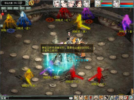 两位魔王战败后,会去向狮驼王求援,并解开剑阵封印,需战胜剑精灵(可单人挑战),将十二把镇妖剑插回对应阵眼,才能挑战最终BOSS狮驼王(可选择普通和卓越两种难度),挑战成功可获得套装玉符、机缘令牌、机缘仙丹等奖励!