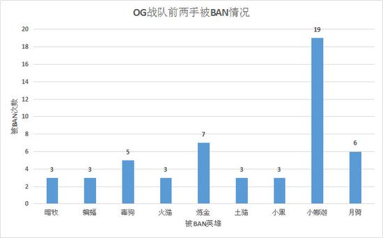 在被BAN的英雄之中,前两手BAN人最值得统计,因为一般是版本大热和战队绝活。下面来看看OG战队前两手被BAN英雄情况。