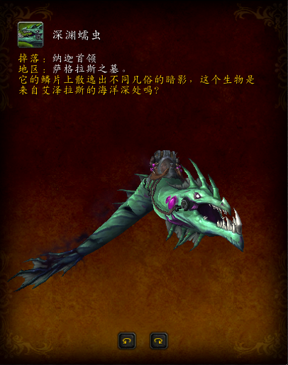 军团再临7.2团队副本萨格拉斯之墓,3号BOSS“混混”哈亚坦和4号BOSS主母萨丝琳这个两个娜迦BOSS都会掉落一个坐骑,深渊蠕虫,该坐骑为可在水下游动的坐骑。
