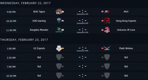 ROX Tigers、H2k-Gaming、Hong Kong Esports、M19