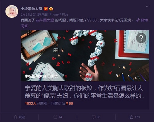可能板娘比较中意这个问题吧,毕竟也是军师花了99元问的,板娘就做了详细的回答!小编处于好奇就花了一块钱去围观了一下,下面是板娘的回答!