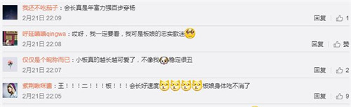 听到这个欣喜的消息,军师们马上就开污了,多数在赞扬会长真是能干!文化水平高的军师评论道:年富力强百步穿杨,更有军师评论板娘要生八十大板,这是不是有点难为板娘了,会长和板娘要坚决响应二孩政策!板娘还在文末放了一张王小板的帅照,可能是知道自己马上要升级当哥哥了,王小板颜值直线上升,现在看起来已经比会长帅了不少!