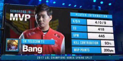 双方开局都是非常谨慎,都在抢视野和细节的对拼,随后KT先进攻对方蓝BUFF,SKT回防并且追击KT三人,兰博TP中路开大支援扭转局势拿下一血。而随后的下路对拼中,Bang也在劣势下拿到一千杀。
