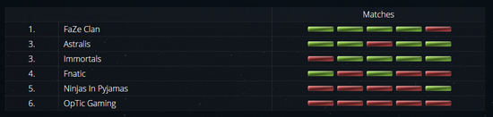 而FaZe在Niko加入后无疑正式进入了起飞模式!小组赛5轮过后仅负Astralis。而Astralis依旧延续了良好状态,面对老对手们毫不留情,唯有Immortals着实给他们带来了“惊喜”。这三支战队也成功晋级了淘汰赛阶段。