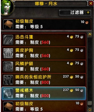 皮甲:灵触古皮,虚空碎片精华,萨格拉斯之血65,石皮皮革250