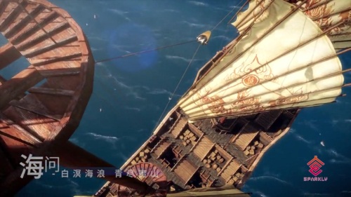 《天谕》动画预告片中展示的美丽港湾即是《天谕》游戏中的汐语湾,位于美丽的“东方威尼斯“苏澜郡。这里生活着能歌善舞的汐族,在玄鲸的保护下,他们寻觅到了汐语湾这出 美好所在,但是浮鲸之宇是汐族每个人都梦想重返的故土。预告片中的场景与游戏内实际场景几乎如出一辙,让人无法分清。