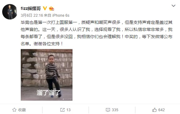 摇摆哥很感激一直陪伴他的热情水友,通过微博送出千元现金红包回馈粉丝。厉害了我的摇摆哥~