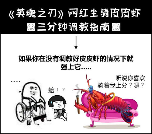 霸屏朋友圈和微博的表情包扛把子,时下最炙手可热的网红皮皮虾。如今也要华丽登上《英魂之刃》舞台,成为全英魂最抢手的人气坐骑!不过野生的皮皮虾生性凶猛,战斗力突破天际,想要驯服它可不简单,如果你有意想要获得《英魂之刃》最拉轰的坐骑,这篇精心准备的《皮皮虾三分钟调教指南》可不容错过!