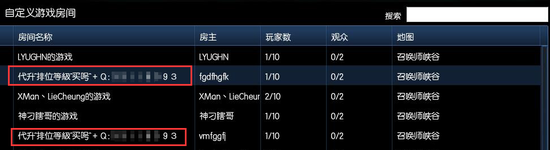 3、通过创建自定义游戏房间名来传播发布恶意诈骗信息: