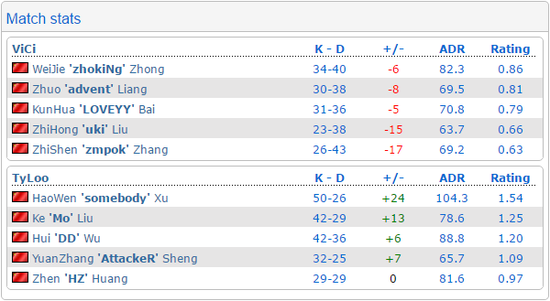 下半场TYLOO再次赢下手枪局,并取得11-7领先。TYLOO赢下下半场第一个长枪局后VICI选择强起并夺回一分,但很快就被TYLOO重置了经济,接下来双方再次互换分数,TYLOO进入eco。第25局DD一次无甲usp三杀帮助TYLOO翻盘,15-10领先手握5个赛点。VICI虽然顽强地挽回了3个赛点,但仍未能逃脱被淘汰的命运,第26局Attacker完成三杀,帮助TYLOO以16-13的比分取胜,总比分2-0战胜对手,取得群星联赛第三赛季中国赛区第三个晋级世界总决赛的名额。