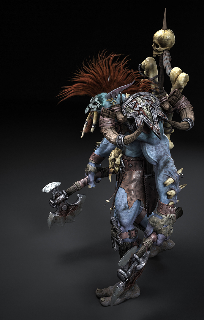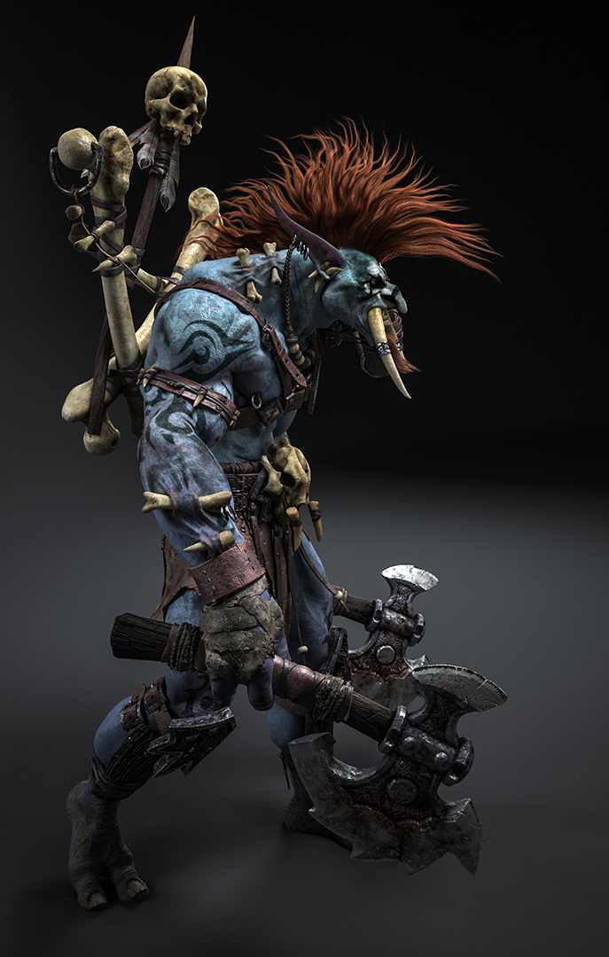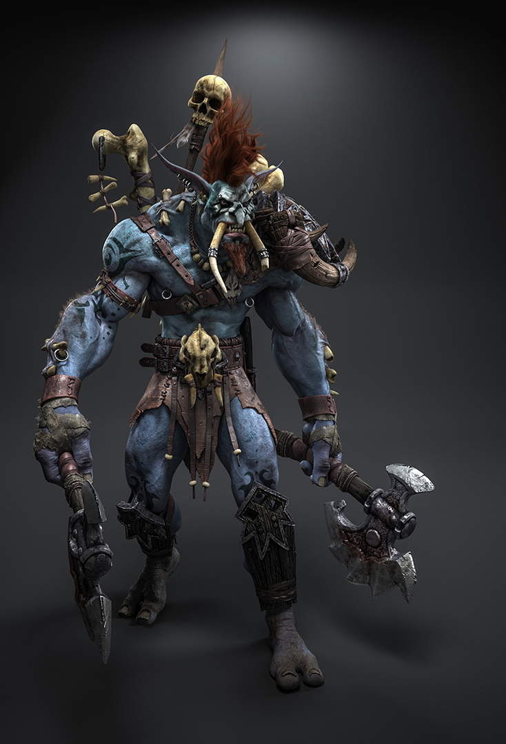 俄罗斯艺术设计师Rodion Vlasov作品:巨魔战士3D模型。Rodion表示自己是魔兽系列的忠实粉丝,受魔兽电影的启发制作了这个模型。