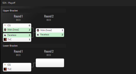 Faceless面对老对手TnC跟Mski,以两个2-1的比分艰难战胜对手。明天Mski、CG、TnC将会决出最后一个东南亚名额。