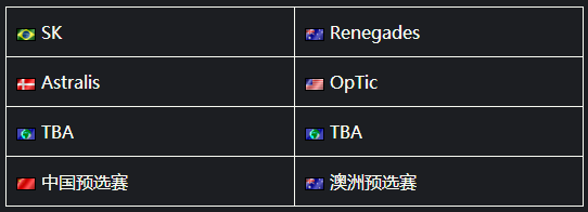 OpTic能否在悉尼重新崛起?加上之前受邀的SK,Renegades和Astralis,目前IEM悉尼站还剩下2个受邀名额未公布。另外2个名额则分别给了中国预选赛和澳洲预选赛的胜者。