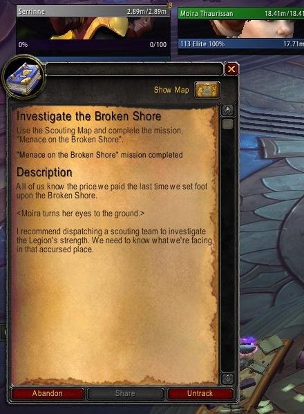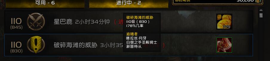 破碎海滩的威胁:派遣勇士调查燃烧军团在破碎海滩的活动,830随从装等要求,4小时。