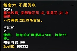 7.1.5版本:星光玫瑰(2),夏斯卡格草(4),入梦叶(4),水晶瓶