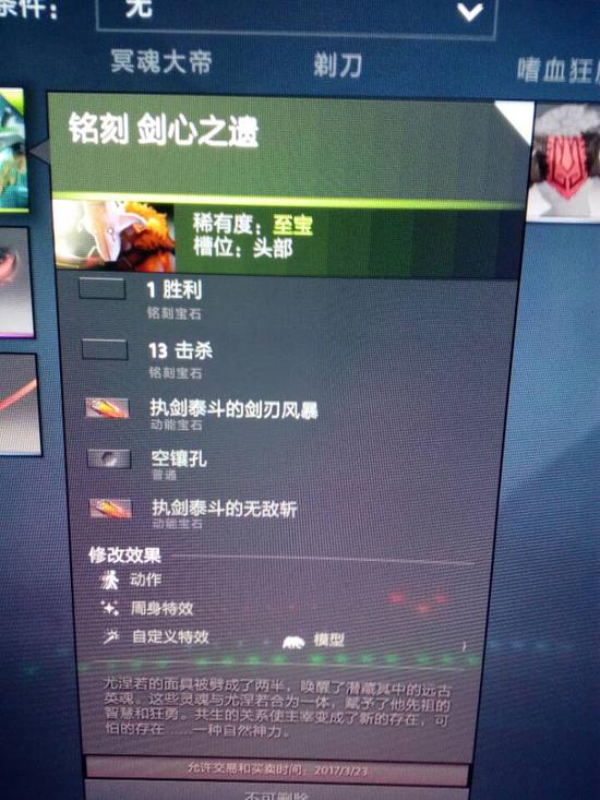 熟悉DOTA2饰品价格的朋友知道,由于尊享是在发布后一定时间内才能获得的限量前缀,所有价格会比一般的铭刻前缀要高出一些,而这个BUG目前还没有明确的官方解释。