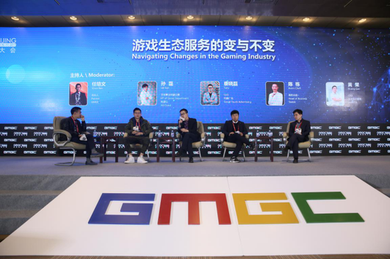 GMGC合伙人任培文,阿里文娱事业部副总裁孙磊,时趣广告CEO唐晓磊,Teebik商务总监陈栋,乐变技术服务CEO的黄杲开启了以“游戏生态服务的变与不变”为主题的圆桌论坛。以下为论坛实录:
