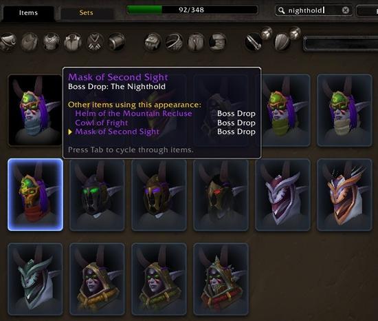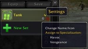 在装备管理器内,现在你可以对装备的套装设定一个专精