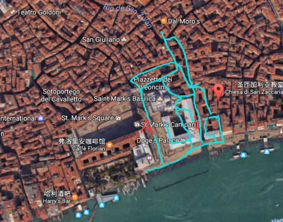 以下是威尼斯的卫星图,我用蓝色标记了游戏中的道路