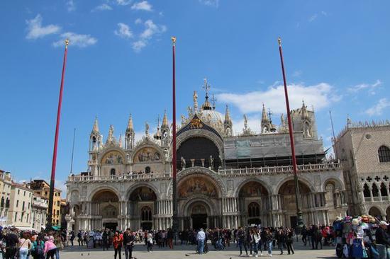 圣马可大教堂矗立于威尼斯市中心的圣马可广场上。始建于公元829年,重建于1043~1071年,它曾是中世纪欧洲最大的教堂,是威尼斯建筑艺术的经典之作,它同时也是一座收藏丰富艺术品的宝库。