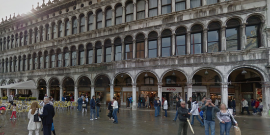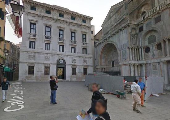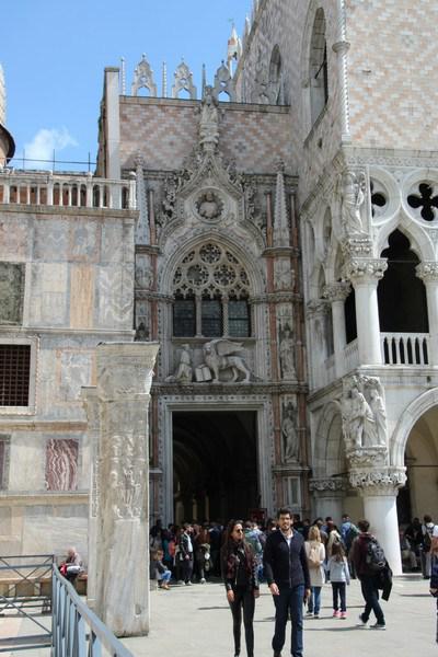 匪家小路出来,左转是水路,右转有两条路。左边的大路通向宫殿和广场,我们可以看到,房子上有个牌子写着piazza san marco 圣马可广场,这是威尼斯的著名景点之一。