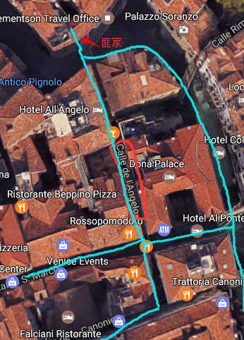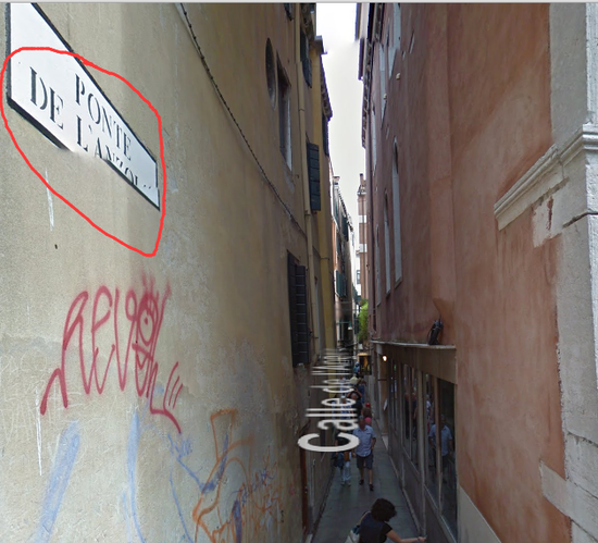 匪家门口的桥,左边的建筑物上,有个牌子,写着CALLE AL PONTE DE L‘ANZOLO这是现实中威尼斯存在的一条道路