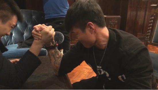 帝师和宣告可能觉得光嘴上说不过瘾,帝师和宣告就让Tabe作裁判,比试掰手腕。