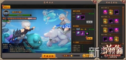 “巅峰1v1”是37《少年群侠传》面向实力型玩家推出的1v1天梯战玩法,活动逢周四至周日开启,每天2场,玩家等级达到60级即可通过主界面“巅峰决战”进入参与战斗。玩家每日前10场战斗可获得名望、积分奖励;累计一定积分,可达到新段位,并获得一次段位奖励。排名奖励将于每周日24点根据本周积分结算,玩家可收获名望、附魔石、如意符、聚灵珠等大量珍贵材料。