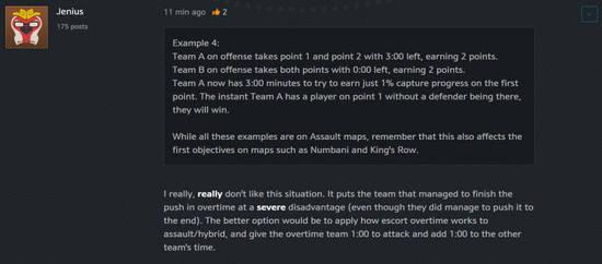 暴雪如今在PTR服正在进行一个全新的防平局模式测试,这个新机制显得更加“激进”,游戏设计师Scott Mercer为我们描述了这个新机制的原理:“一方队伍不必再比对手多占一个点位来取得胜利,如果时间将近且两队分数相同,如今我们将对比两队曾达到过的最大占领百分比,百分比多的一方将获胜,这不是基于每33%一档的占领进度条而说,而是基于0-100%完整的尺度,以前的三段式进度条依旧有效,所以如果进攻方占领进度50%,也会因为失利而降到33%。”