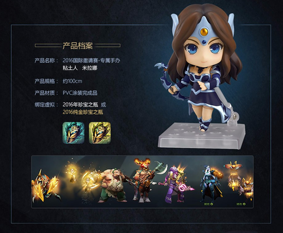本次DAC神秘商店周边种类及其丰富,包括官方英雄手办、毛绒、生活用品、创意T恤等,很多周边都是之前大圣周边创意征集活动的玩家作品。另外米拉娜粘土人是TI6官方英雄首次在国内发售,每人限购1个,内含2016纯正魔力珍宝之瓶,而且有机会开出纯金魔力珍宝之瓶,数量有限,赶紧预定。