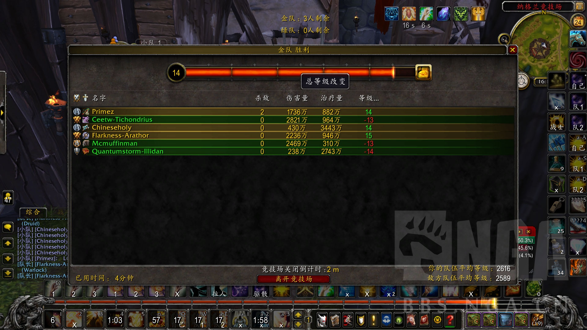 术士这个时候一般交大哥DK直接开罩子武僧直接业报继续艹萨满把血稳好鸟德控完心控恶魔术,被断了就加血。