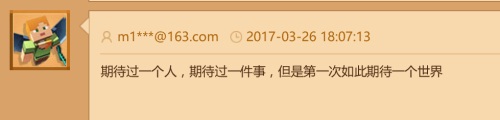 有意思的事情是,官方此次设立了评论留言的活动,页面上线仅10分钟留言就达千条,众多玩家回顾多年来和《我的世界》这款游戏的故事,关乎梦想、友情和爱情。和所有打动人心的东西一样,《我的世界》对于玩家而言,已经不仅仅是一个游戏,而是一个世界。