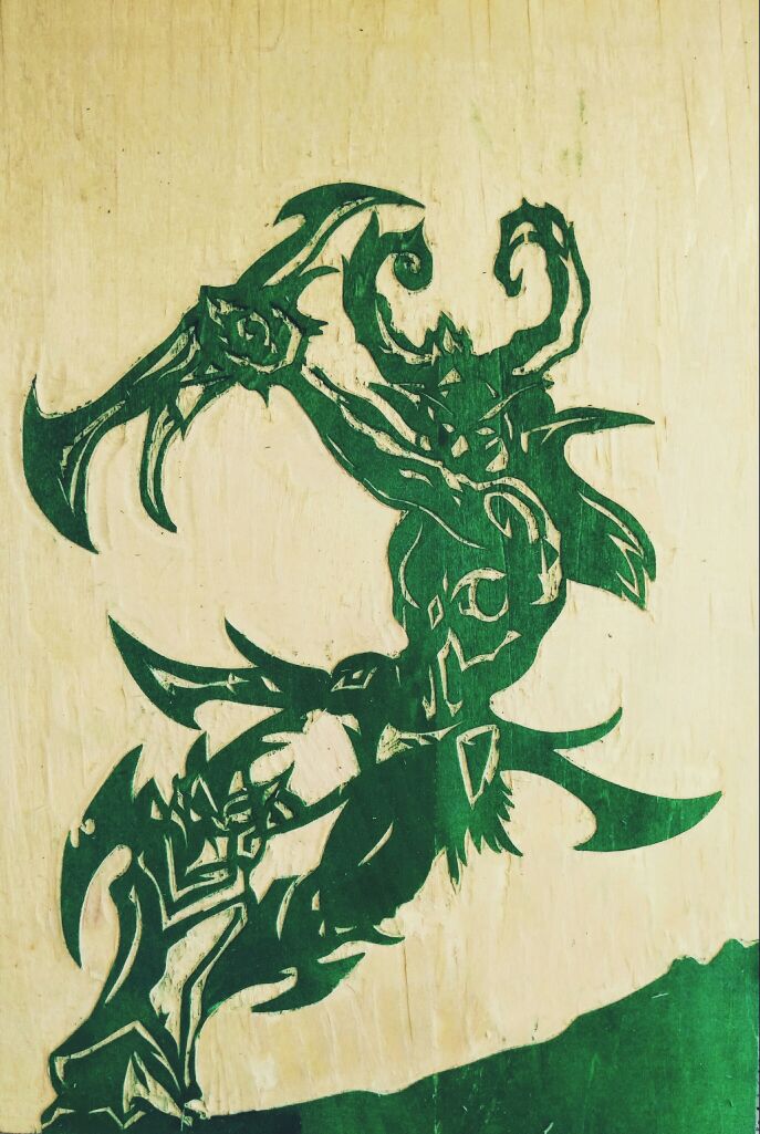 伊利达雷的恶魔猎手,木板雕刻画。本人DH角色,刻的不好,多指教。