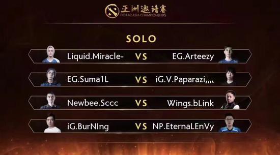SOLO赛采取单败赛制,8名选手根据票选排名进行分组对阵,第一名vs第八名,第二名vs第七名,第三名vs第六名,第四名vs第五名。除总决赛为BO3外, 其它比赛均为BO1影魔SOLO模式。半决赛及总决赛将在DAC主赛事第二个比赛日(4月2日)进行。