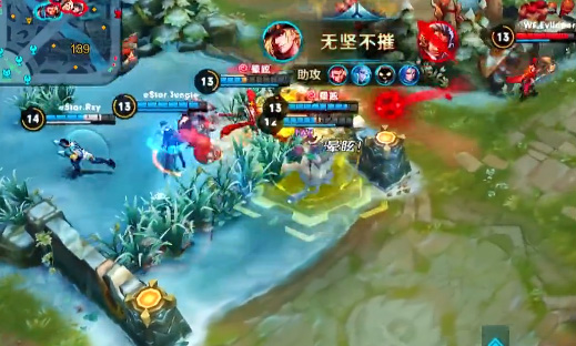 哪吒,作为一个战士兼坦克的英雄,有着强大的支援大招,能够在开团的时候迅速的来到队友身边,而在本周的KPL大赛中的发挥更是相当的精彩。在本周的3/26号,SC对战GK的比赛上,在SC明显处于优势不足的情况下哪吒一个人用一号技能扫了一下周围的敌人,然后用二号技能限制住了周围的敌人以后配合队友攻击,最后直接给了对方一个团灭!