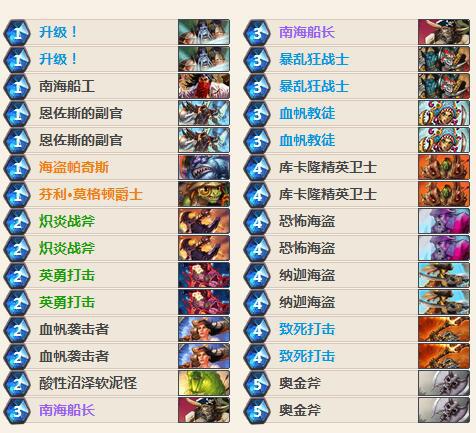 武器+海盗的经典组合也让战士的蓝白卡组一样可以绽放出传说级的光芒,而冲锋生物与职业法术的斩杀更是让打脸战士变得势不可挡。对于新手玩家而言海盗战卡组的造价十分低廉,即便你没有火车王这样传说级的冲锋生物,也一样可以依靠火箭兵这样的替代品来完成卡组的构筑。