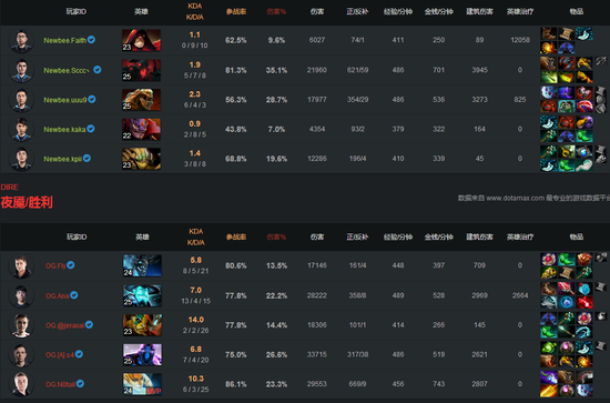 虽然newbee本次比赛发挥十分出色,不过OG阵容的优势在后边完全体现了出来,newbee高地上不去,兵线很难处理。谜团开BKB直接刷新大只拉一个影魔,Sccc被秒后newbee溃败,随后逼近newbee中路高地,只需要一波就将newbee带走了。