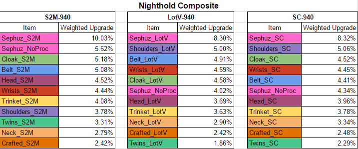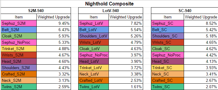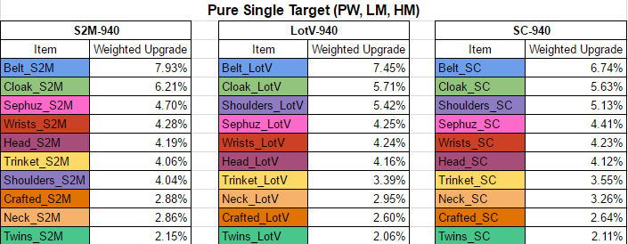 译者:原帖有一种基于虚空之遗下暗夜要塞和单目标的总体评分,我觉得意义不是很大就不搬了,毕竟按照boss换会更合适