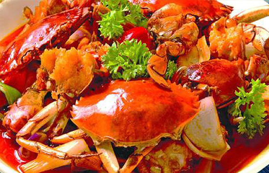 和乐蟹:膏满肉肥,为其它青蟹罕见,特别是其脂膏,金黄油亮,犹如咸鸭蛋黄,香味扑鼻。最常见的做法是清蒸,蘸以姜醋配成的调料,原汁原味。好吃的和乐蟹,脂膏几乎是整个地覆于后盖,蟹肉肥美多汁。