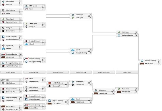 欧洲区全程采用双败赛制,胜者组BO3而败者组除半决赛决赛之外为BO1,决赛为BO5,胜者组冠军在决赛中有一局胜场优势。NLG作为上届亚军,一定是心有不甘的,而他们的表现也表明他们想拿到冠军的决心,胜者组一路2-0击败ProDOTA、C9等战队闯入决赛,而FRIENDS首轮因为未知原因(可能是迟到)被直接判负掉入败者组,但是毛子队还是非常凶猛,败者组未尝一场失利直接杀入决赛。