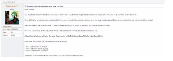 前一则公告表示,由于长期的诉讼费用,导致资金不足,因此此前卖出的永久版变为2年有效,此外由于案件败诉,工作室正准备将业务转出德国,今后不再提供德语版本外挂,换句话说:德国不留爷,自有留爷处;换个山头重新卖,暴雪你就接着告吧,正好有理由取消终身版再卖一波外挂。