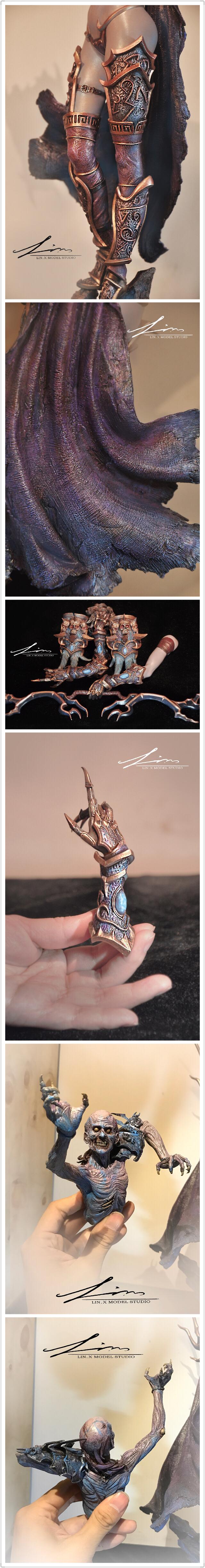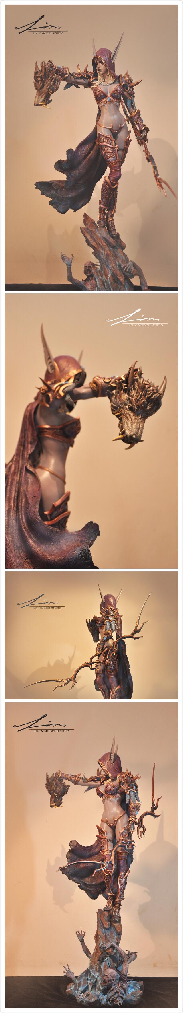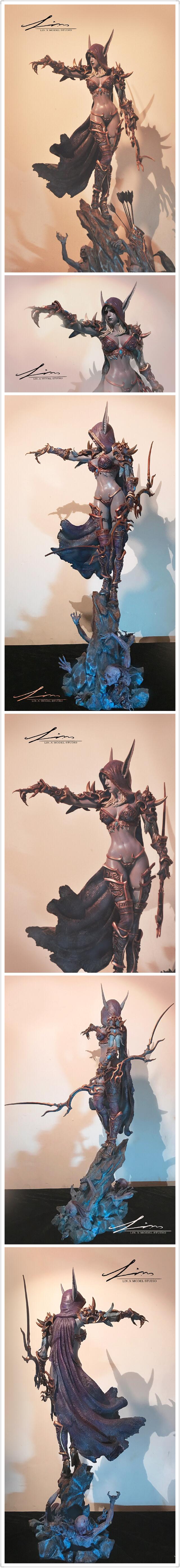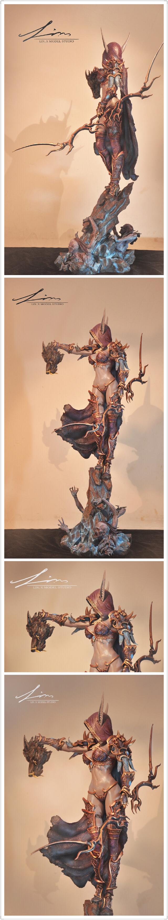 一直很喜欢希女王,于是去年年底开始设计并制作希尔瓦娜斯雕像,从概念设计,到泥雕,到翻模,到涂装共花了4个月时间,今天终于大工告成。这个女王是我心目中的样子,一百个人心中有一百个女王,作为同人作品,我不是游戏3D建模师,我用我的方式阐述我对女王的理解,和还原了我自己心目中那个女王的形象,仅此代表我个人的理解,如果与您心目中的女王相符合,与您产生了共鸣我感到十分荣幸,如果与您心目中的女王相悖,仅此作为交流,无意冒犯,还请您口下留情。