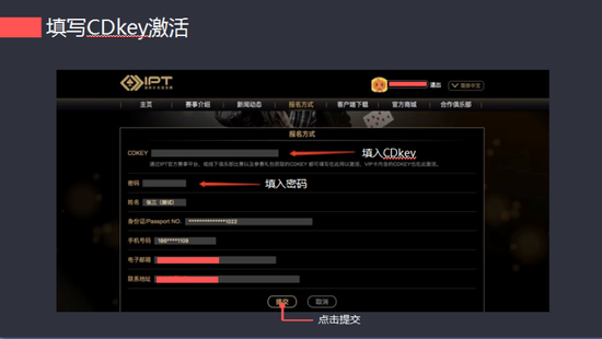 4、 信息提交完毕后,拿出你辛苦得来的IPT主赛事邀请函,刮开如下图门票上的CDKEY,密码区域