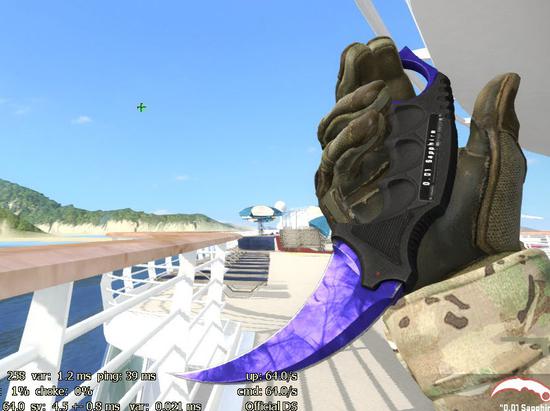 原理虽是这样,但枪械模型与皮肤的组合堪称千变万化,造就了不少传奇皮肤。例如多普勒系列皮肤,除了常规的红黑、粉黑、蓝绿、蓝黑等P1-P4常规多普勒,还有特殊的纯红色、纯蓝色、纯灰黑色皮肤,称之为红宝石、蓝宝石、黑珍珠。例如下图就是一把稀有的蓝宝石爪子刀,与蓝黑相间的P4多普勒明显漂亮许多,价格也是超出十倍。此外,还有渐变大理石皮肤的“冰火”、渐变之色皮肤的“爆色”、深红之网皮肤的“大小网”等各种玄学,令人应接不暇。看似相似的几个皮肤,只是因为图案的小小差异,价格就差出数倍。