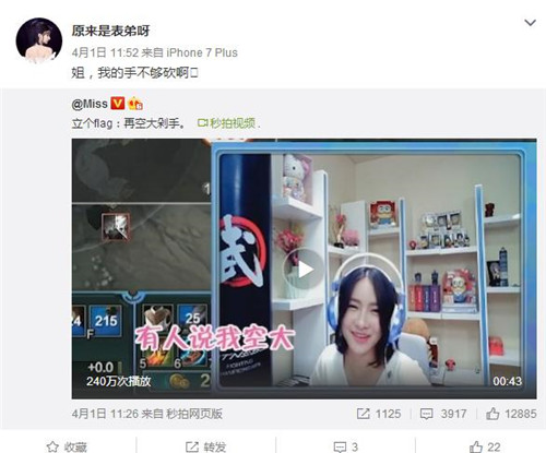 近日Miss大小姐发微博称要升仙了,网友表示先让表弟升仙,你自己看着办!小编发现一些大咖主播直播间都有一个弟弟。虽然都未曾露过脸,不过弟弟们都有一个共性,那就是技术很强。问题随之而来,究竟谁的技术最强!