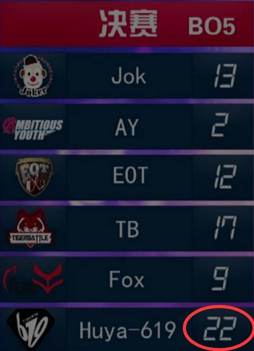 来到决赛环节,赛前被人不看好的619战队开始进入暴走状态。连续三局占据了炸刺榜和吞噬榜的榜首,队内的明星选手炫星“炸刺王”的身份复活,彻底成为了619战队获胜的发动机。最终,619也如愿捧回了自己的冠军奖杯。