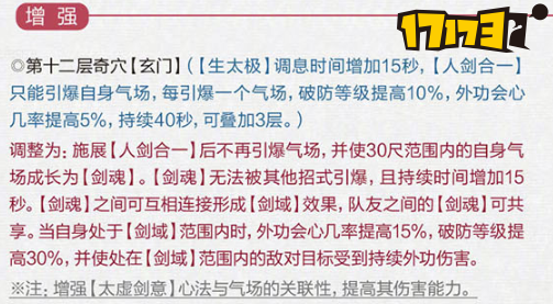 在本次技能改动中,由于玄门机制的改动和AOE伤害,弥补了剑纯没有AOE的短板,以及优化了玄门覆盖率,相对于之前的二线DPS(大附魔一线),有所提升